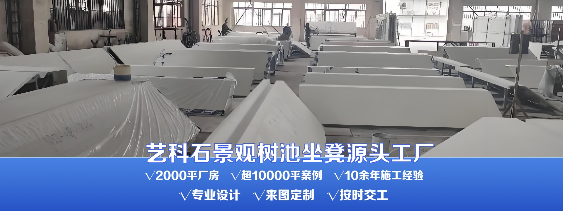 10年藝科石產(chǎn)品生產(chǎn)經(jīng)驗(yàn),提供上門(mén)勘察現(xiàn)場(chǎng)情況,根據(jù)客戶需求、可提前策劃出三維圖紙等,再設(shè)計(jì)出合理的方案